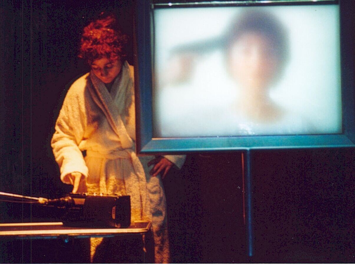 Biokhraphia (2002) est un mot composé qui pourrait être traduit par « vie-délire ». S’y déploie une interview houleuse de l’artiste Lina Majdalanie à propos d’une pièce qu’elle aurait créée avec son partenaire Rabih Mroué. L’intervieweuse pousse l’artiste dans ses retranchements, en l’obligeant à répondre de ses choix intimes, familiaux, politiques et surtout artistiques.